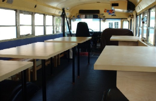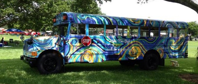 Artist and Tropical Heatwave Designs president Libby Hodges had a vision for making art activities and education accessible to more people, and from that desire came the idea for creating a mobile studio. After some research and a bit of scouting the Internet, Libby found an International Navistar bus that had been retired from school service, but still had many miles left to go. A team of dedicated, tireless volunteers under Libby's direction transformed the bus into Arty, complete with new flooring, work tables, seating and a paint job that turns heads wherever Arty goes.
